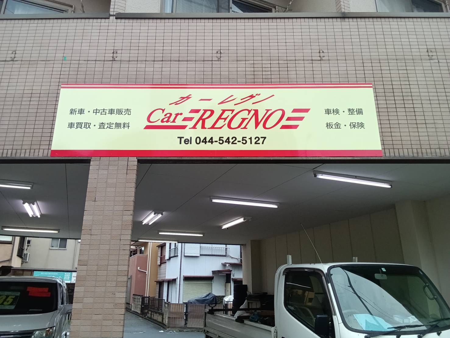 自動車販売店・整備工場・倉庫・事務所など、幅広い業種で人気の看板です。