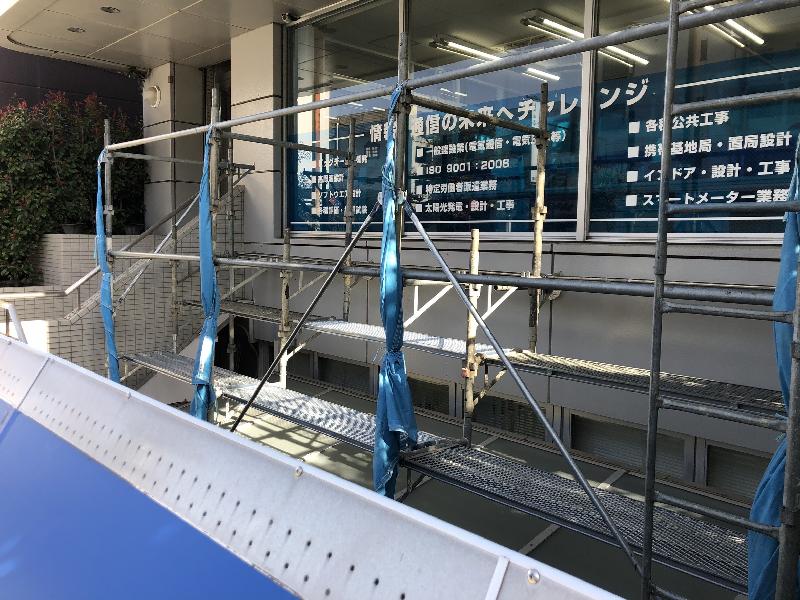 施工当日は足場を設置し、安全対策を徹底したうえで作業を実施。